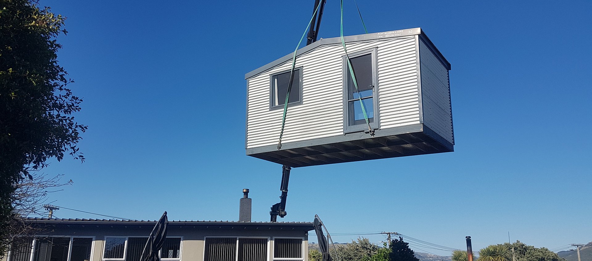 When you rent a cabin it is delivered to your site by a truck mounted crane. We can often lift these over difficult obstacles such as fences, hedges or even garages, to place them right in your back yard.