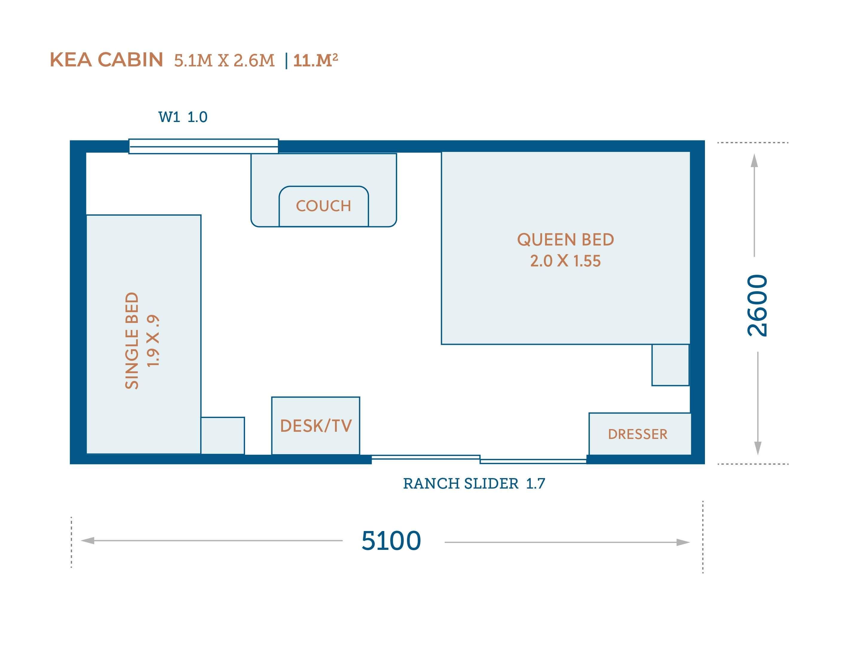 The Kea is a versatile mid-sized cabin, ideal for use as an extra bedroom, study, or small home office. With 11m² of usable space, a 1m x 1m window for natural light, and a 1.7m ranchslider for easy access, it offers a comfortable, practical layout that suits most residential properties. A great all-round option for families needing extra room or those wanting a quiet workspace at home.